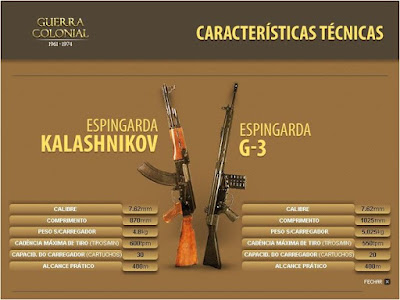Sobraram-me uns minutos, desta tarde de sábado, e decidi usá-los para publicar esta imagem que mostra as duas armas que sustentaram a Guerra Colonial. Não gosto de lhe chamara Guerra do Ultramar, pois dessas houve muitas e não apenas a nossa. Todos os colonizadores foram, mais ou menos, corridos de África e nem sempre pacificamente e essas foram as suas guerras. À nossa prefiro chamar-lhe Colonial, talvez seja apenas uma mania minha que me perdoarão.