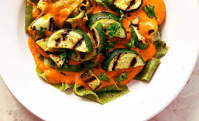 Questa ricetta per le pappardelle di spinaci fatte in casa con salsa al peperone rosso ha un sapore intenso, è abbastanza facile da preparare! Inoltre, è senza latte e senza uova