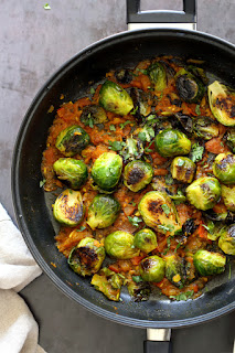 Questi cavoletti di Bruxelles vengono caramellati sulla padella con alcuni semi di cumino interi e rimossi dalla padella.