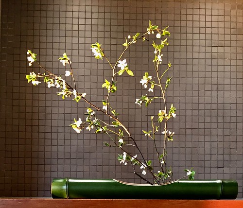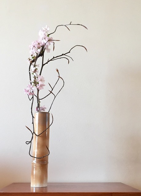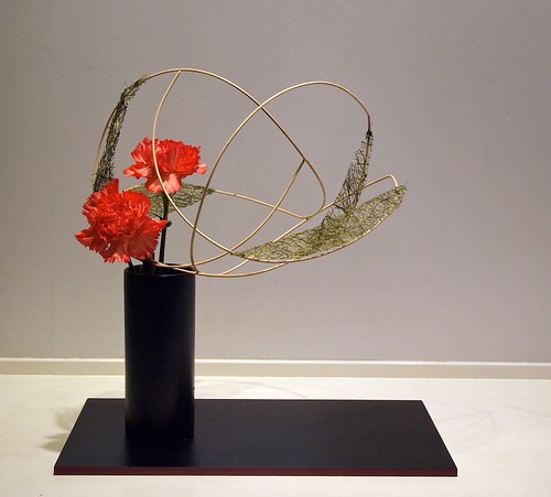 The Sogetsu school teaches as an important principal not to use more flowers than what is needed to make a strong composition. Many flowers have a pretty look, that can confuse the presentation of a more sculptural material.