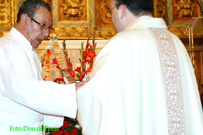 Don Eusebio López Rubio, SdB Director del Complejo Educativo de la Stma. Trinidad.Don Sergio Codera,SdB, hace su ofrenda floral a Don Bosco.