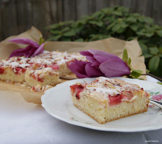 Francuskie ciasto z truskawkami i rabarbarem jest delikatne i bardzo maślane, dodatkowego smaczku dają mu płatki migdałowe. Ciasto z tego przepisu jest pyszne i świetnie nadaję się do innych kwaśnych owoców. Doskonałe francuskie ciasto z rabarbarem, truskawkami i migdałami, upieczone na podstawie tego przepisu umili każdą chwilę.