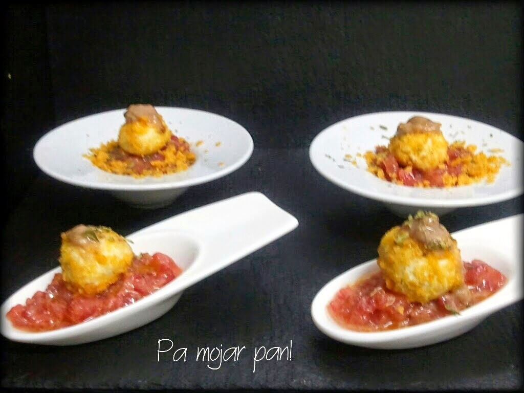 la bolita de queso encima y sobre ésta colocamos una cucharadita de la pasta de