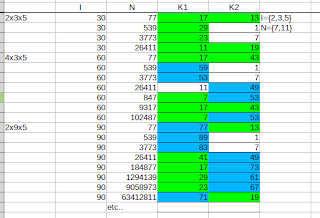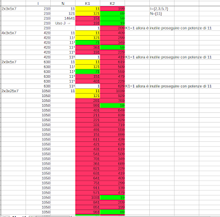 Adesso vediamo cosa succede con I basato su {2,3,5} e N basato su {7}. Saranno primi i K1, K2 maggiori di 7 e minori di 49 (*6).