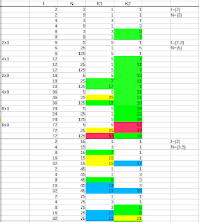 L'idea è usare come fattori di I i numeri primi (e loro potenze!) da P2 a Pi e per N i numeri primi da P(i+1) a P(i+j) (*3).