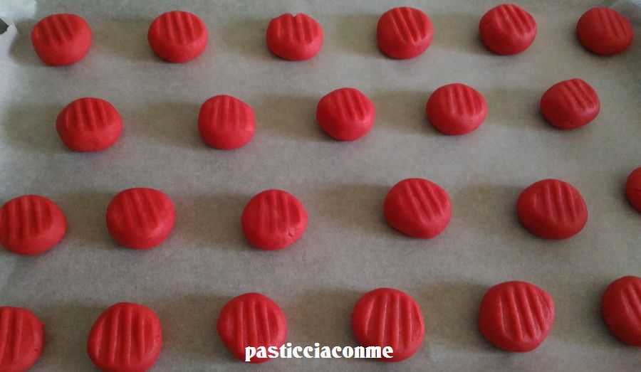 Con i rebbi di una forchetta appiattire le palline.