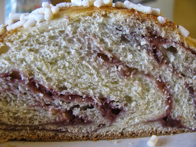Si scalda il latte e vi si scioglie il lievito. Io ho messo nella macchina del pane la farina (setacciata), lo zucchero, il sale, il cardamomo e il burro aggiungendo poi il latte. Ho fatto impastare formando una palla che ho trasferito in una ciotola coperta a lievitare fino al raddoppio (almeno 1 ora).