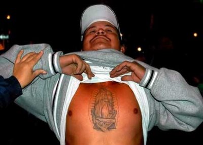 Here is a worshipper who has even tattooed my image on his chest. Ay, that hurt. Next time the Border Patrol comes along, guess who is getting a helping hand?? Good guess.