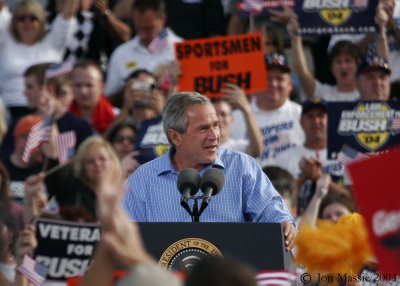 This photo was taken in 2004, back when Bush still had most of his hair and a higher popularity rating among Americans. He's grayer now, lost a lot of popular support.
