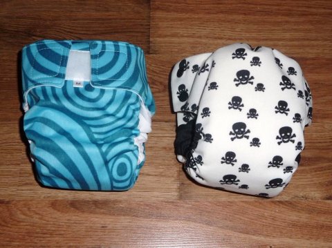 Tänään on pikkuinen nukkunut kunnon päikkäreitä, äiti ehti hyvin ompelemaan.. :) Sain valmiiksi kaksi M-kokoista taskuvaippaa. Turkoosi vaippa on tehty LillaTaskun ja pääkallovaippa Swaddlebeesin kaavalla. Molemmissa peppua vasten Coolmax; turkoosissa valkoinen ja pääkallovaipassa musta.