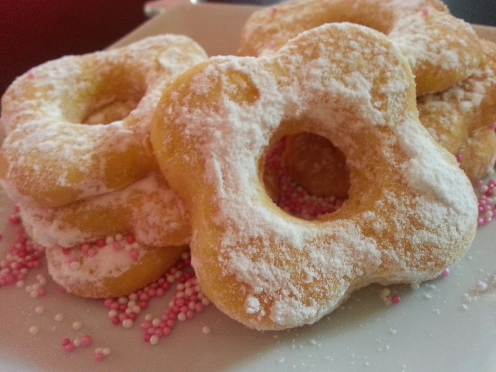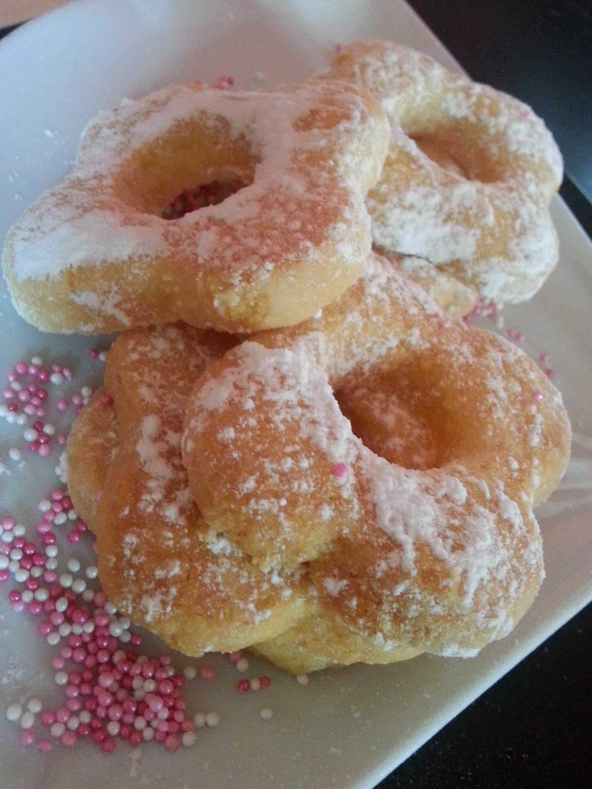 Mentre qui il tempo si diverte a farci impazzire e soffrire,passando dai 30 gradi a momenti di temporali con un umidità pazzesca io e la mia piccola Ginevra passiamo i pomeriggi a pasticciare. Martedì è stata la volta dei famosissimi CANESTRELLI,anche se non avevamo in casa lo stampo della versione classica,il risultato è stato comunque molto soddisfacente.