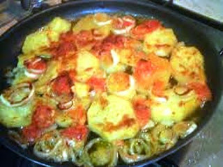 INGREDIENTI: Patate, Cipolla, Pomodoro Pelato o Pomodoro Maturo, Olive nere, Olio di Oliva, Basilico, Origano, sale e pepe nero.