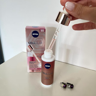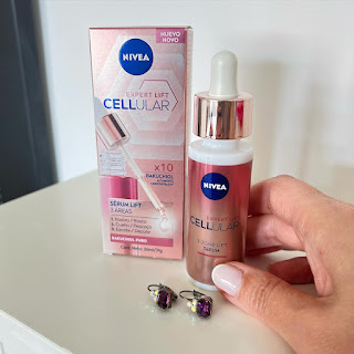 O NIVEA Cellular Expert Lift Sérum 3 Zonas (rosto, pescoço e colo) caracteriza-se pela sua cor rosada.