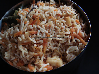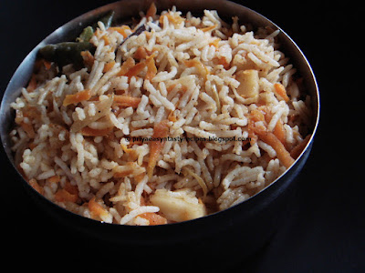 Hope this is my last entry for the Rice Mela by Srivalli...this is one of the simple n easy version , also a lunch box menu , my mom used to prepare when we r kid, i love this masala rice n continuing still to prepare, as its one of my favourite...