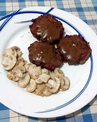 Lo hice para cenar y quedé como una reina, jeje, mi hijo me rebañó el plato, sobre todo de las hamburguesas, las acompañé con unos champiñones salteados que le encantan.