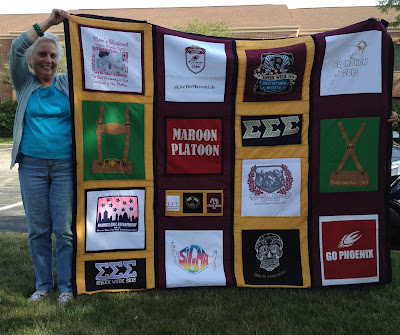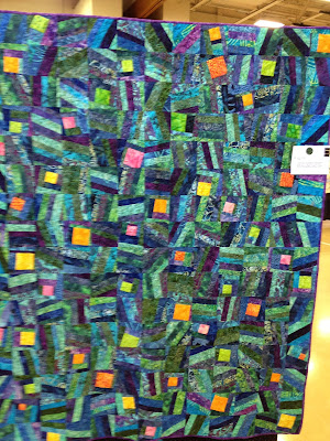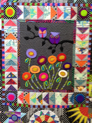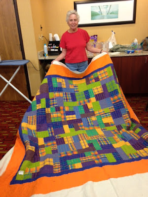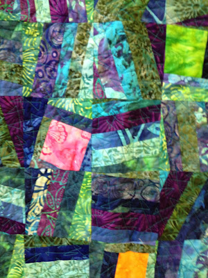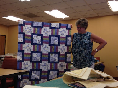 Last weekend I had hoped to completely assemble my newest quilt project (Kaffe Fassett Blue City Life), bind three quilts, and possibly start a new project or work on one of the UFOs that has been living in my car. In actuality, I enlarged a quilt back by adding two gi-normous strips (which took way more time than it should have), made a sample birthday block for our swap next year, completed the remaining 20 blocks for my Kaffe Blue City Life, made two dog pillows and bound one quilt. Not shabby, but perhaps I shouldn't compare myself to my friend Kim G., seen in the previous quilt post, who assembled five quilt tops in the same time frame. She also speaks several foreign languages fluently and has naturally curly long blond hair...