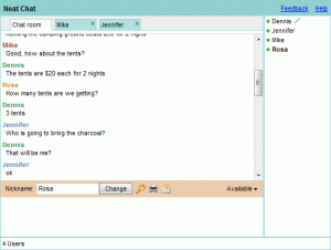 Pubblicato da BettingMaker | martedì, novembre 29, 2011 | Chat, Msn, Utility | 0 commenti »Chattare con i vostri amici in maniera semplice e veloce è possibile. Oggi ho scoperto un servizio interessante, si chiama Neat Chat e permette di creare in pochissimi istanti una chat di gruppo senza installare praticamente nulla. Come funziona? Semplicissimo, andate sul sito, inserite il vostro nickname e premete su "start group". Ora dovrete attendere il caricamento della chat, non allarmatevi in pochi secondi la chat sarà pronta. Come segnalare la creazione della chat ai vostri amici? In alto nella pagina sono presenti i bottoni dei principali social network (Facebook, My Space, Twitter, Hotmail ecc.) gli account mail e il link della pagina stessa. A questo punto non posso fare altro che augurarvi buona conversazione!