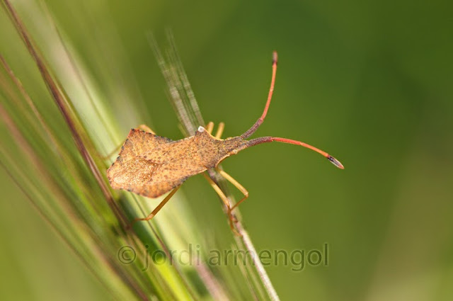 Amb els camps florits comencen a aparèixer els primers artròpodes: un pentatòmid o xinxa roja (Eurydema ornatum), un corèid i un curculiònid (Lixus algirus)