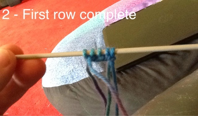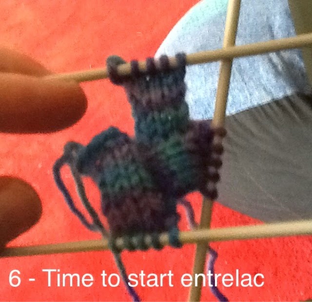 Wrap your scrap yarn around your needle front to back. Using your sock yarn knit into the loops created. You should build 5 stitches.