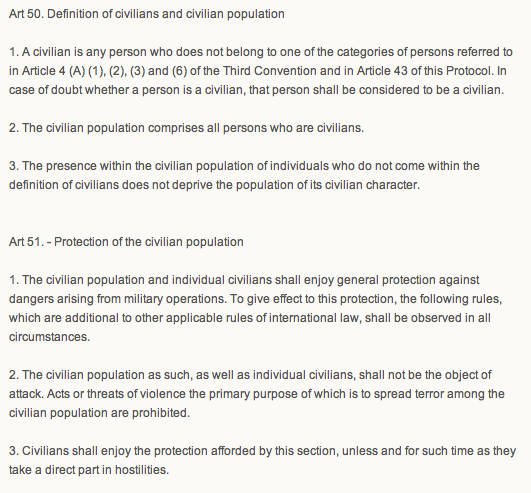 To be fair, not all law profs are hacks [update: I was pointed to here by Phil L.]. And not all other forms of profs are devoid of hack-iness. But if you are a law prof advocating for the use of violence against civilians, you suck as a law prof. You suck as a human being as well. If a political science prof wrote something like that, one could possibly imagine that there is a strategic logic for how civilian casualties might work. Indeed, there have been such folks who have argued that civilian victimization is a workable counterinsurgency strategy. That does not mean it is right, but that it might work. A law prof should be arguing about whether something is legal or not. But I guess if you don't read the Geneva Convention, then you don't have to worry about such arguments?