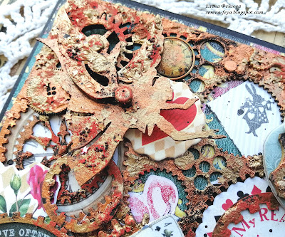 Ну да, ну да ))) у меня лежали в запасах всякие шестеренки и краски-металлик "на случай, если".. Желание вот только не приходило ими воспользоваться. А тут такой творческий пинок! В общем, после погружения в ржавые-МК у меня получилось ЭТО ))) Добро пожаловать в Страну Чудес!