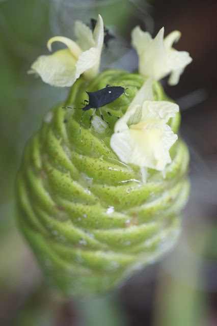 (Top photo: These leaf-hoppers (I think?) like our pine cone lilies!)