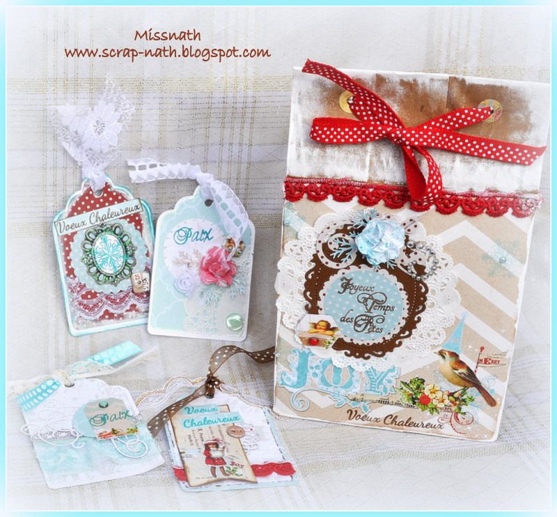 ainsi que des tags sur lesquels j'ai utilisé une seconde étampe texte de ce kit.