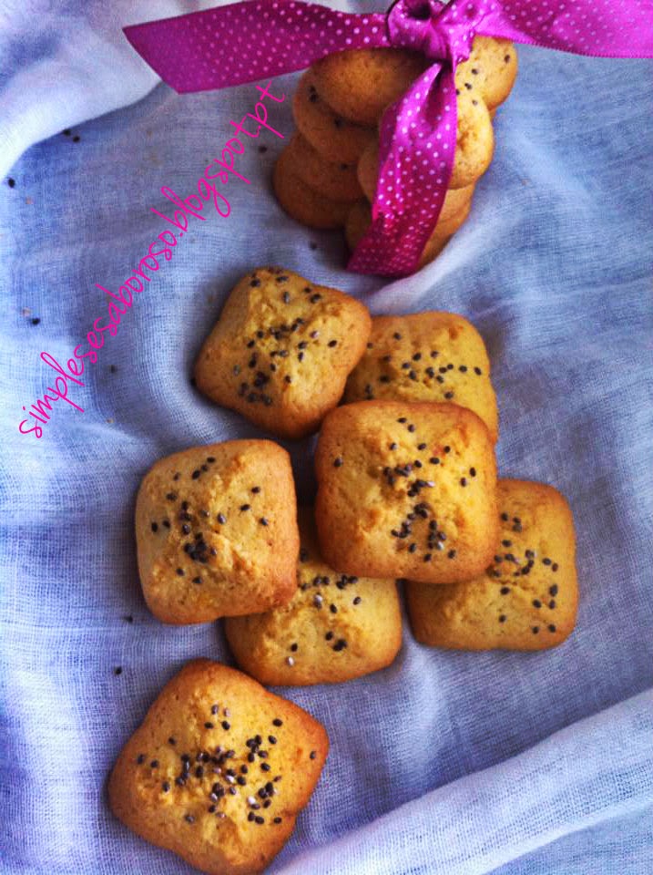 Claro que tinha que experimentar então o dito cujo! Fiz estes biscoitos de laranja muito simples...