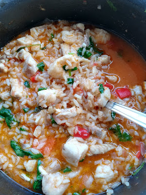 de cebolada. O peixe frito. O arroz de tomate. As morcelas. As pataniscas