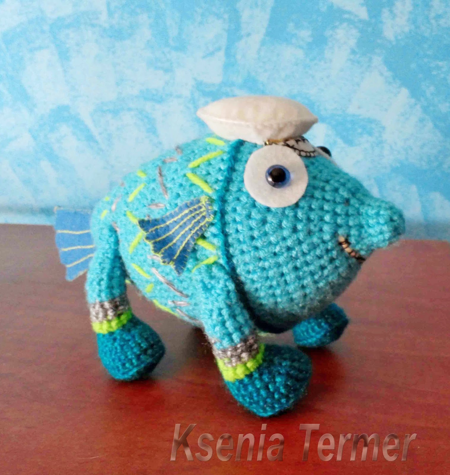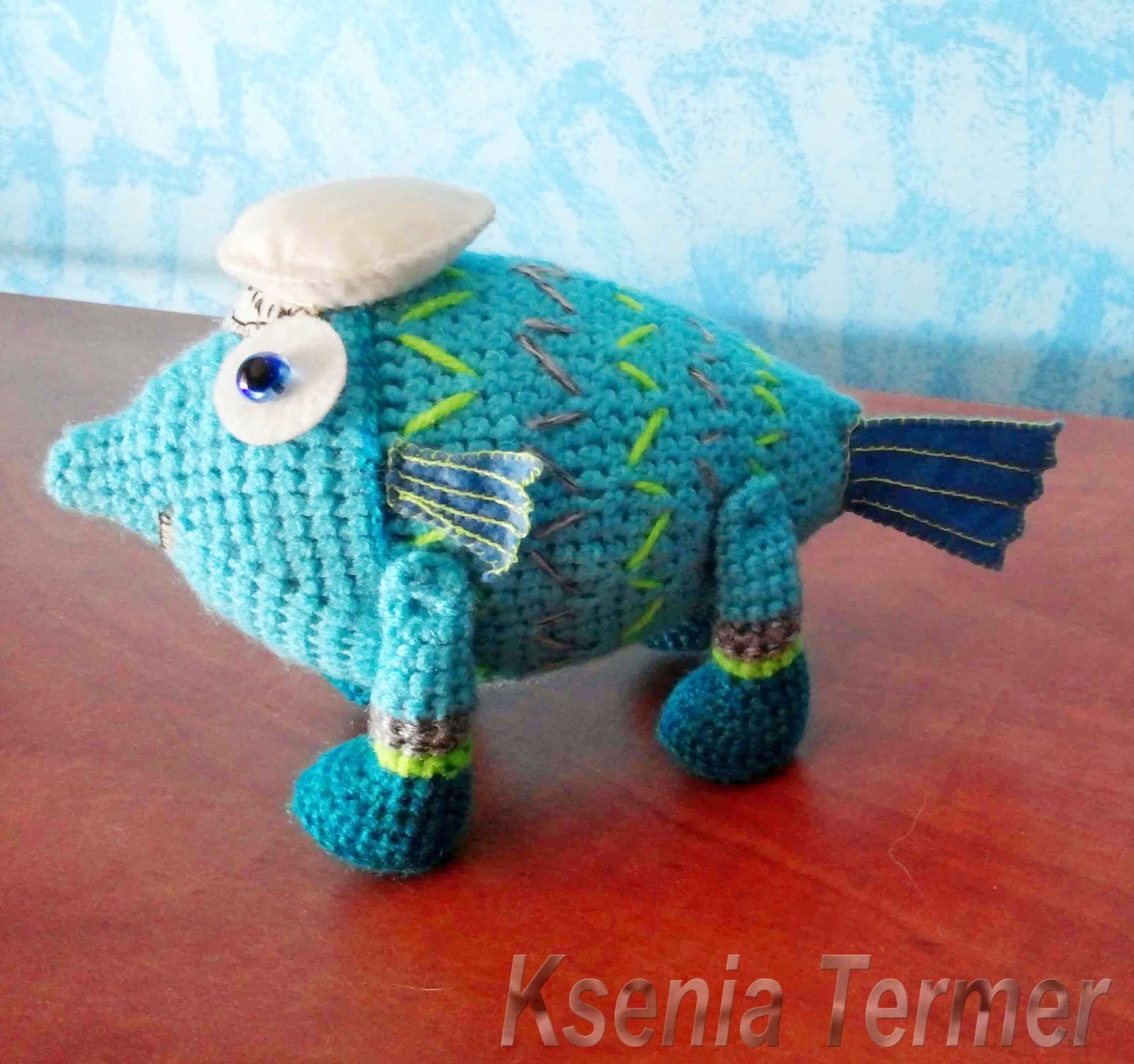 рыбка прячется в море,сшита из цветной клеенки,на резинке/