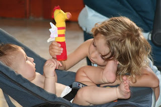 Dalia è venuta di mattina a darmi il cambio, in modo che io potessi fare colazione, farmi una doccia, eccetera. Il tutto con l'ausilio della zia Paola, nel non secondario ruolo di babysitter per Elena (e da stasera ci ha raggiunto pure la nonna).