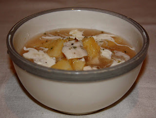 4. Tálaláskor a gombócokra aprítjuk az alaplé főzésétől maradt zöldséget és leöntjük a kenyérbeles mártással.