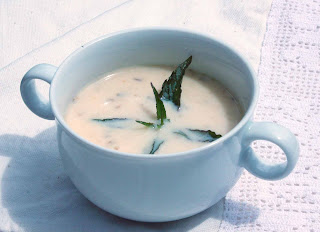 3. Ha a gombócok megpárolódtak, sűrítésképpen kenyérbelet morzsálunk az alaplébe.