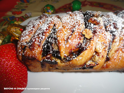 | КОЗУНАЧЕНО РУЛО С МАРМАЛАД ОТ СИНИ СЛИВИ,ОРЕХИ И ТАХАН ХАЛВА |