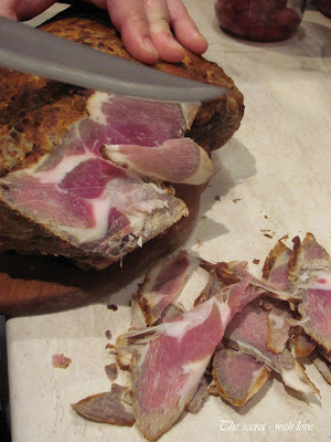 10. За да не просъхне бута, след нарязване го обмажете хубаво с разтопена свинска мас и го закачете отново на проветриво място.