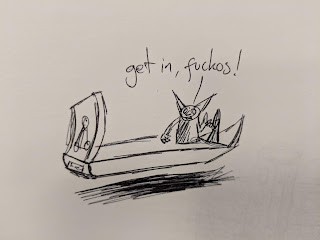 - Outside, quite conveniently, Styx has shown up on his new rune-powered goblin hovercraft! That's where he's been this whole time! (50 exp)