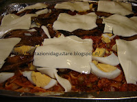 Intanto cominciare a lessare le tagliatelle (scenderle al dente), scolarle dall'acqua di cottura e condirle con il ragù ( non tutto mi raccomando, lasciamone un pò da parte).