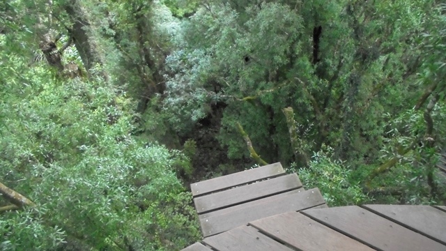 Of course, now that we were in the canopy, the last part was getting back down. But they didn’t’ make it easy. The walk ended with an 18 meter (60 foot) drop from a platform. They called it a “controlled descent” and in order to get up to the platform we had to walk up a stairway. The first part was fairly normal as far as stairways in the middle of a forest go.