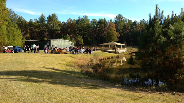 It was a beautiful fall day! The wedding ceremony was down at Gretchen's gazebo. The bride was flown to the ceremony by Pat in his motor glider. She got out of the plane on the runway so I couldn't get a photo of that.