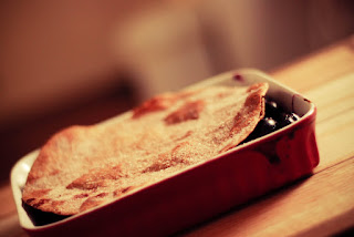 I had a surplus of fresh blueberries in my fridge and a lone tortilla leftover from quesadilla night. It was also time to put my new mini casserole dish to use and so, I decided to make a dessert for the first time in a long time! If you prefer a more cobbler like crust you could use some refrigerated biscuit dough and plop it on top instead of the tortilla and sprinkle with sugar before baking.