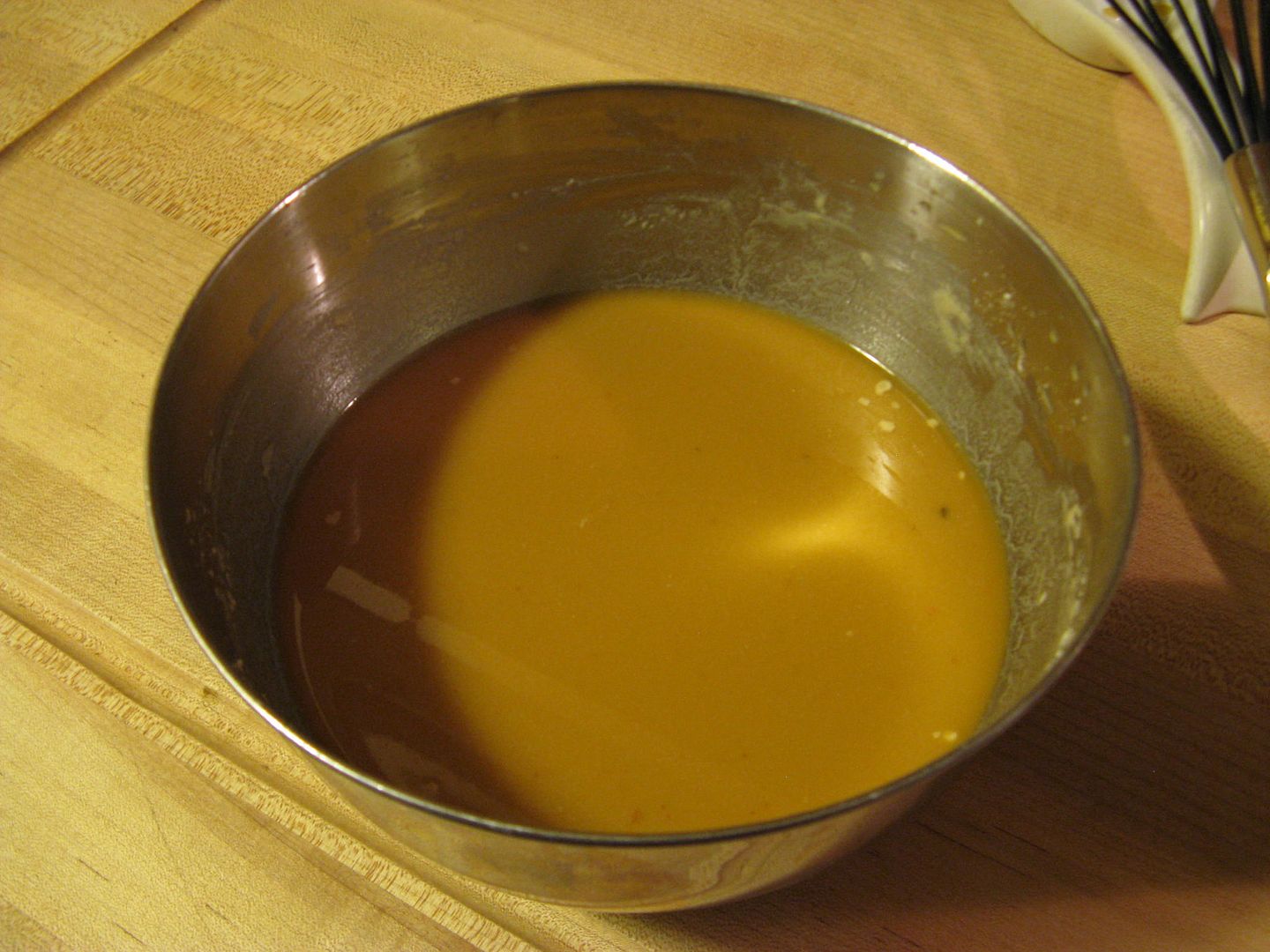 While the above was heating, I took two cups of beef stock and added a half cup of flour and whisked until the lumps were incorporated and the resulting mixture was smooth.