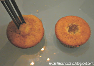 Rivestite una teglia da muffin con dei pirottini, versate in ognuno un pò di composto e fate cuocere in forno preriscaldato a 180° per circa 20 minuti (vale sempre la prova stecchino!!).