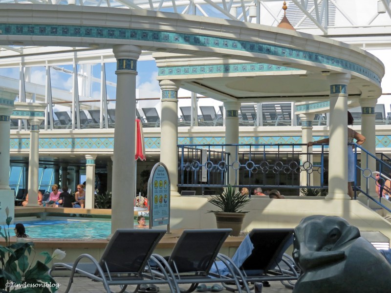 During the first day at sea, we had time to examine our ship, the Enchantment of the Seas. And there was much to explore, from vast sundecks, solariums and common gathering places to bars, restaurants, entertainment venues and shops. Plenty of programming too. Anyone so inclined could easily put stress right back into their lives and run from one event to another. Not me and my friends. We wanted to relax and enjoy the sail. Lagom is best as we say in Sweden. Life onboard was full of small delights, such as the ‘animals’ I would find in my cozy stateroom waiting for me on the sofa or on the bed every night.