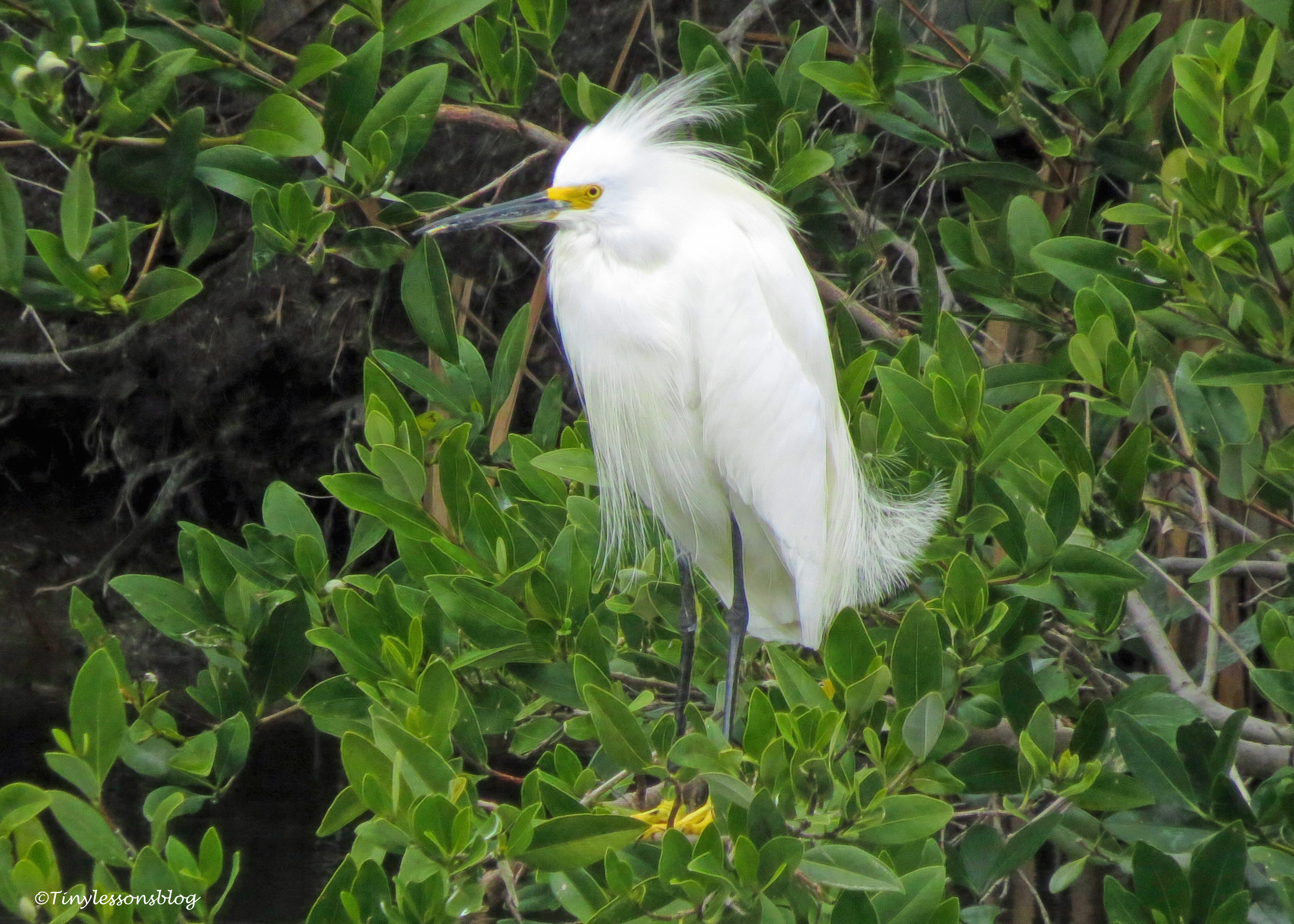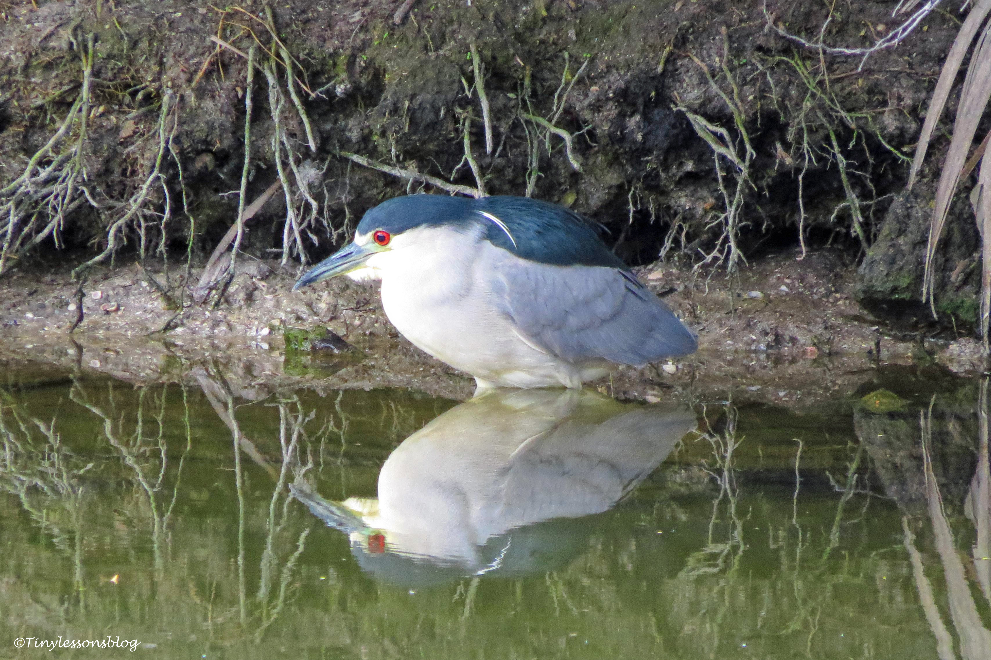 Closer to the Osprey nest, at the east end of the marsh, Several residents had sought shelter in the bushes. I was happy to see the Snowy Egret had already developed a breeding plumage and to spot both a Black- and Yellow-crowned Night Heron for the first time in quite a while. Most residents seemed to be back from their holiday travels.