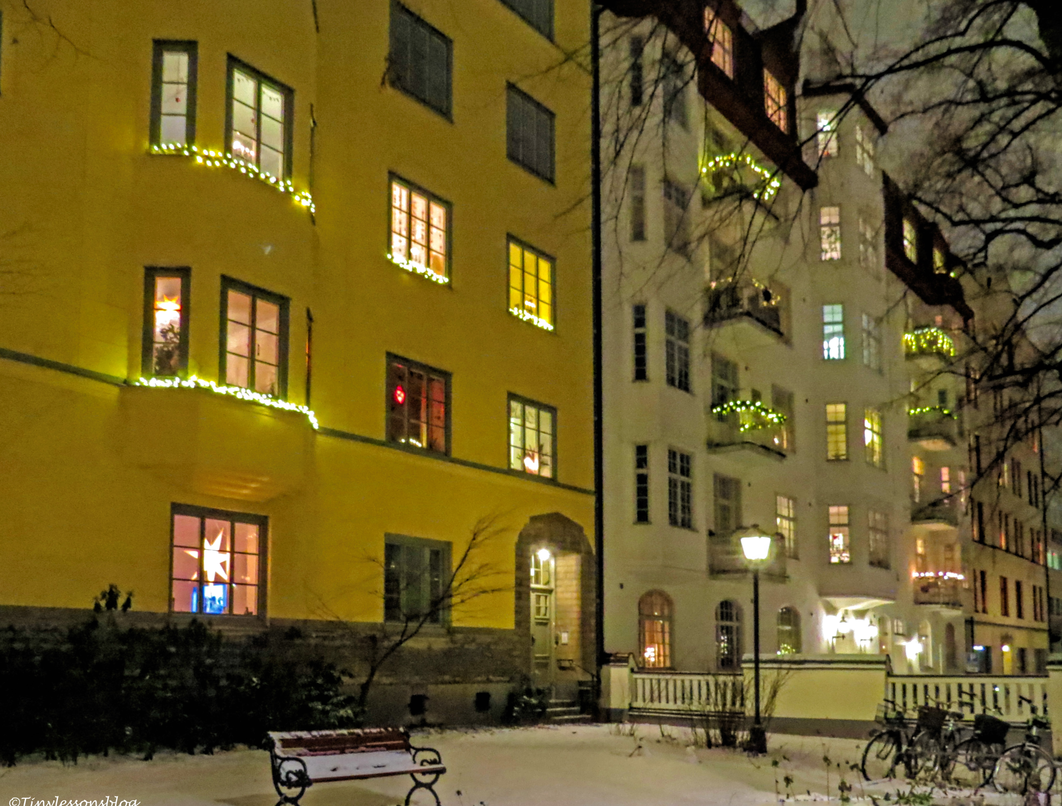 And the late night walks allowed me to immerse in the feeling of warmth of the Swedish Christmas – despite the below freezing temperatures. Most windows in the city were lit with chandeliers or Christmas stars, like this one at my sister’s…