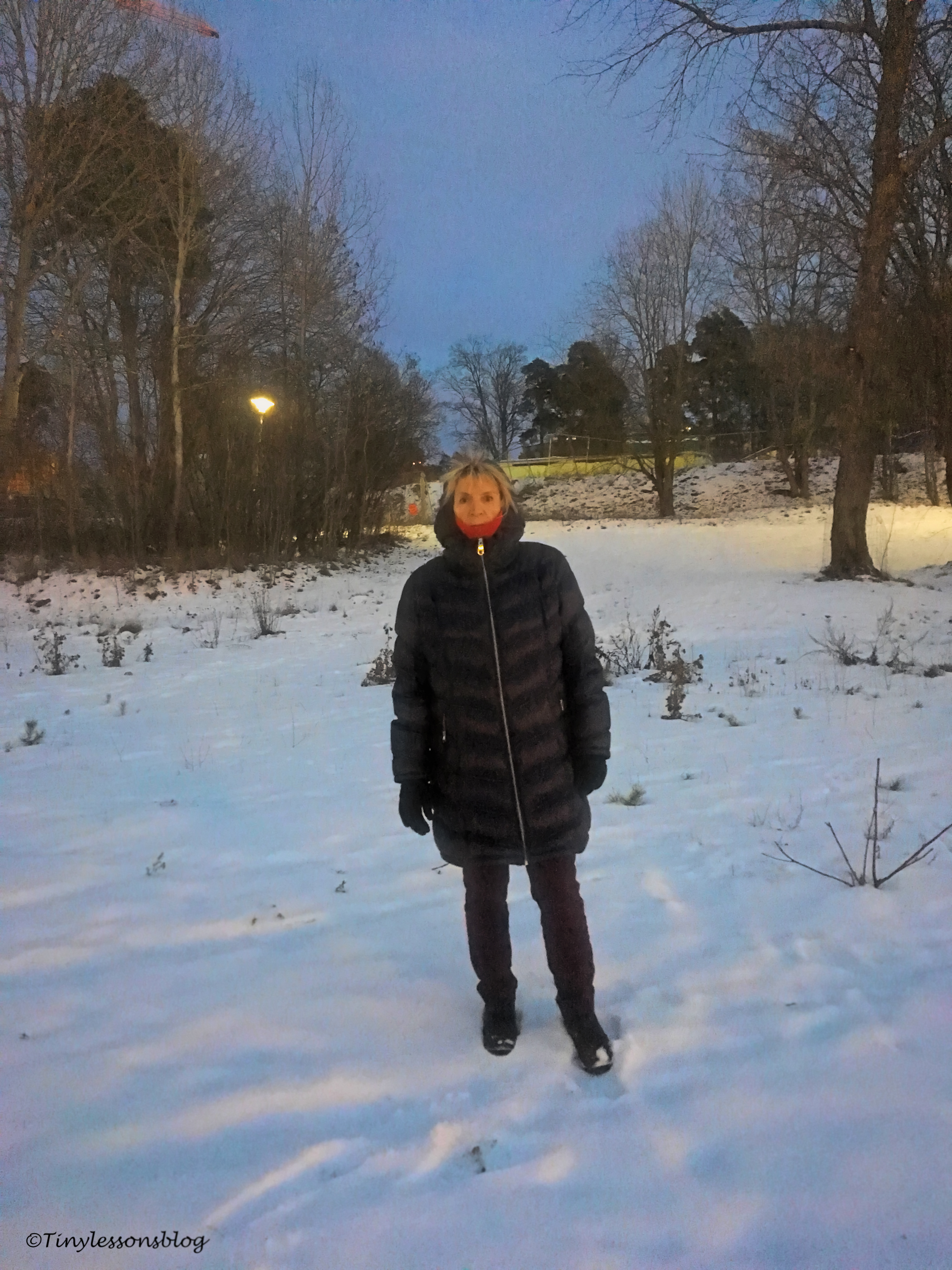 I thoroughly enjoyed the long walks that Beppe, the poodle, took us on every day along Stockholm’s snow covered sidewalks and paths through the many parks. As you can see this Florida girl was properly attired for the winter weather with a hooded buffer jacket, snow boots and borrowed warm gloves.