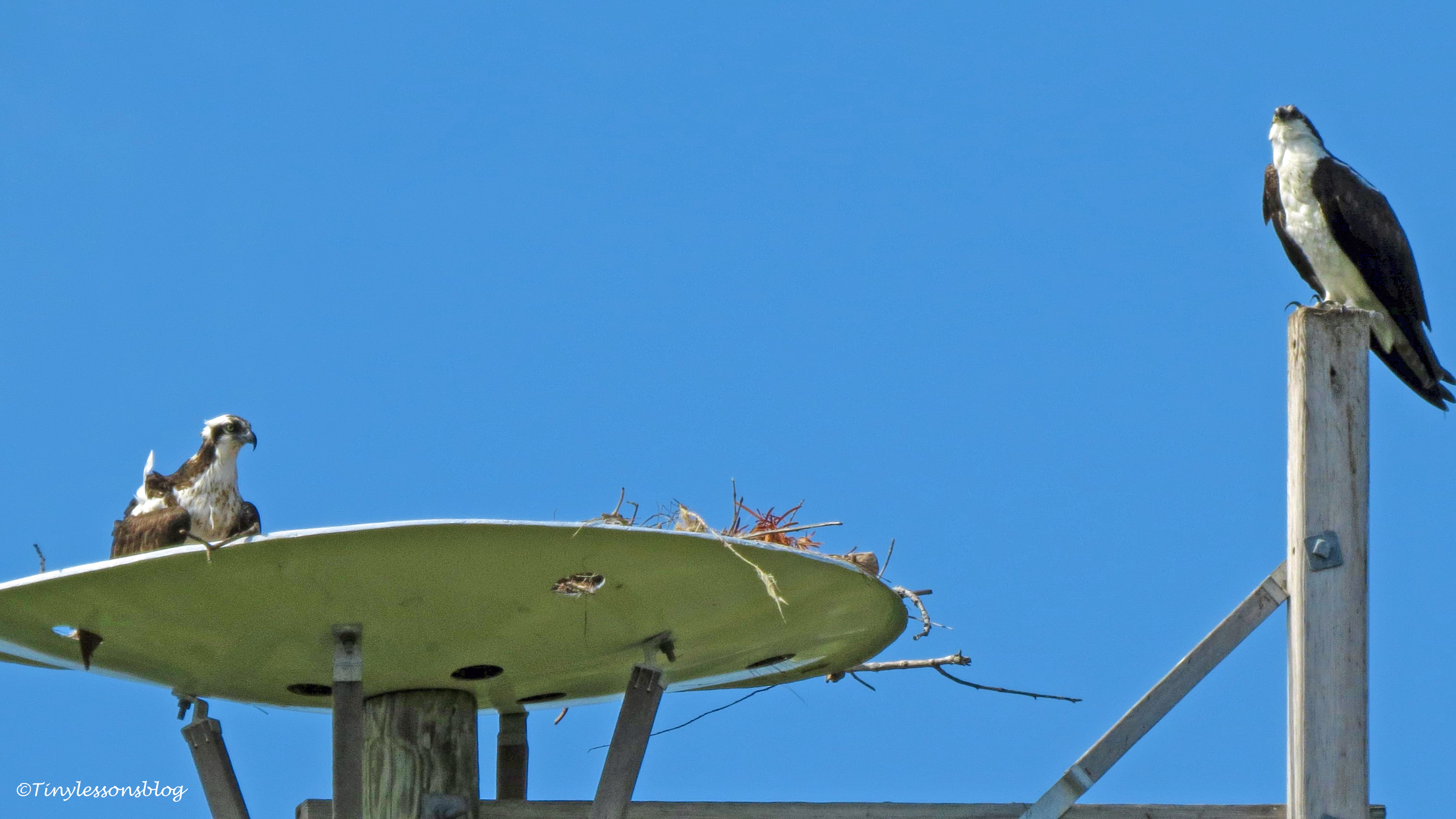 So yesterday Dylan and I decided to go out in the afternoon’s heat and check on the ospreys. We saw Papa Stanley taking in the sun on his favorite perch on the bayside. He was keeping an eye on the nest…and us.