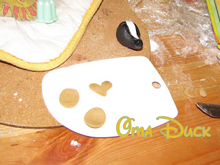 Dal cuoricino ricaviamo due gocce e facciamone altre due bianche più piccole. Scusate un po' di disordine ma come saprete nuvole di zucchero a velo si librano nell'aria quando si lavora la pdz :-))