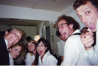 Today, I had lunch with two of my closest friends. I live with one, I used to live with the other. Well now all work for the same institution. We've all three known one another since we were wee freshman at NYU, so it's cute how we're still best friends and stuff. They're awesome boys. We sat at lunch today, though, with little to say. After you've known people for a long time, after you've spent hours and hours talking and talking...while sober, while on all sortsa drugs, during class, on the subway, waiting for fireworks to start, waiting to board a plane, in the hospital, from adjoining jail cells...you wind up running out of things to talk about. Rather, you wind up running out of things you feel compelled to talk about. Because you've said it all. And what you haven't said, can wait until you're less sleepy. Of course, we can always count on each other for the occasional politically incorrect, racially inappropriate remark, or the (more-popular) snarky, rude, and belittling remark regarding one anothers' personal existence, sometimes from a religious or racial perspective. I get off easy, though, because one's a gay jew, the other's half black and I'm the white girl. So instead they just tease me about the fact that I used to be fat and have been in therapy for four years. It's really the perfect system.