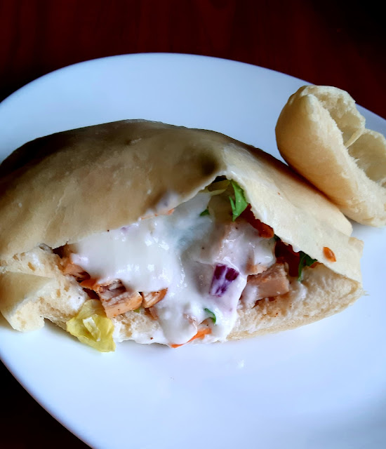 Elkészítjük a pitákat. Tálaláskor apróra vágott sülthúst (gyros fűszerkeverékkel bepácolt és megsütött tarja, oldalas, karaj), zöldségeket, salátát, öntetet teszünk ki, mindenki elkészítheti a saját gyrosát.